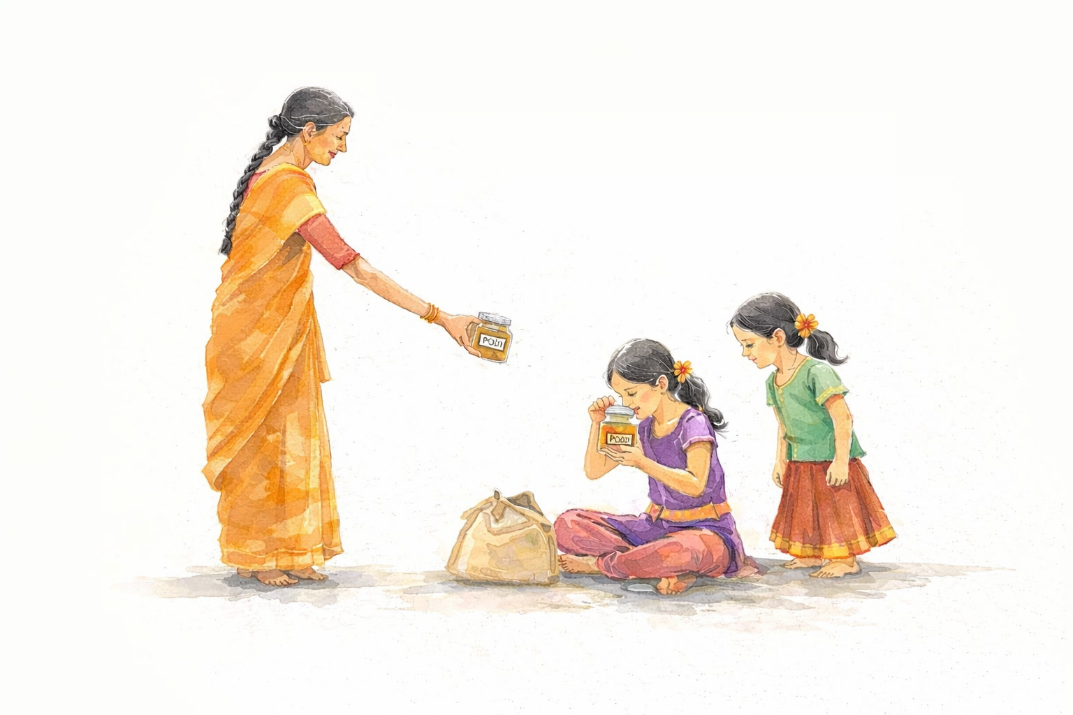 “Pack the podis I placed on the table, Srijanani,” I called out to my daughter after lining up the cans neatly. My daughter, Srijanani, had come to visit us for a few days, along with her two little ones, Gargi and Shruti. “What’s the need to make all these, Amma?” Srijanani sighed. “You strain yourself […]